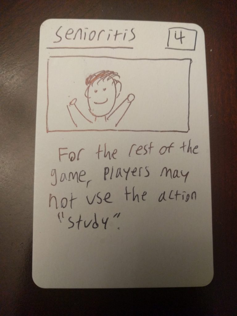 Hey everyone! Recently the decision was made to overhaul the sleep and event system to create a faster game. Essentially, on your turn you play an event card from your hand. The effect happens, and then you can take actions equal to the number written on each card in the top right corner.